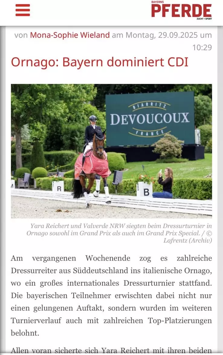 Yara Reichert, vierfache Mutter und Unternehmerin, dominiert mit ihren Pferden das große Dressurturnier auf Gut Winkelacker in Ingolstadt.