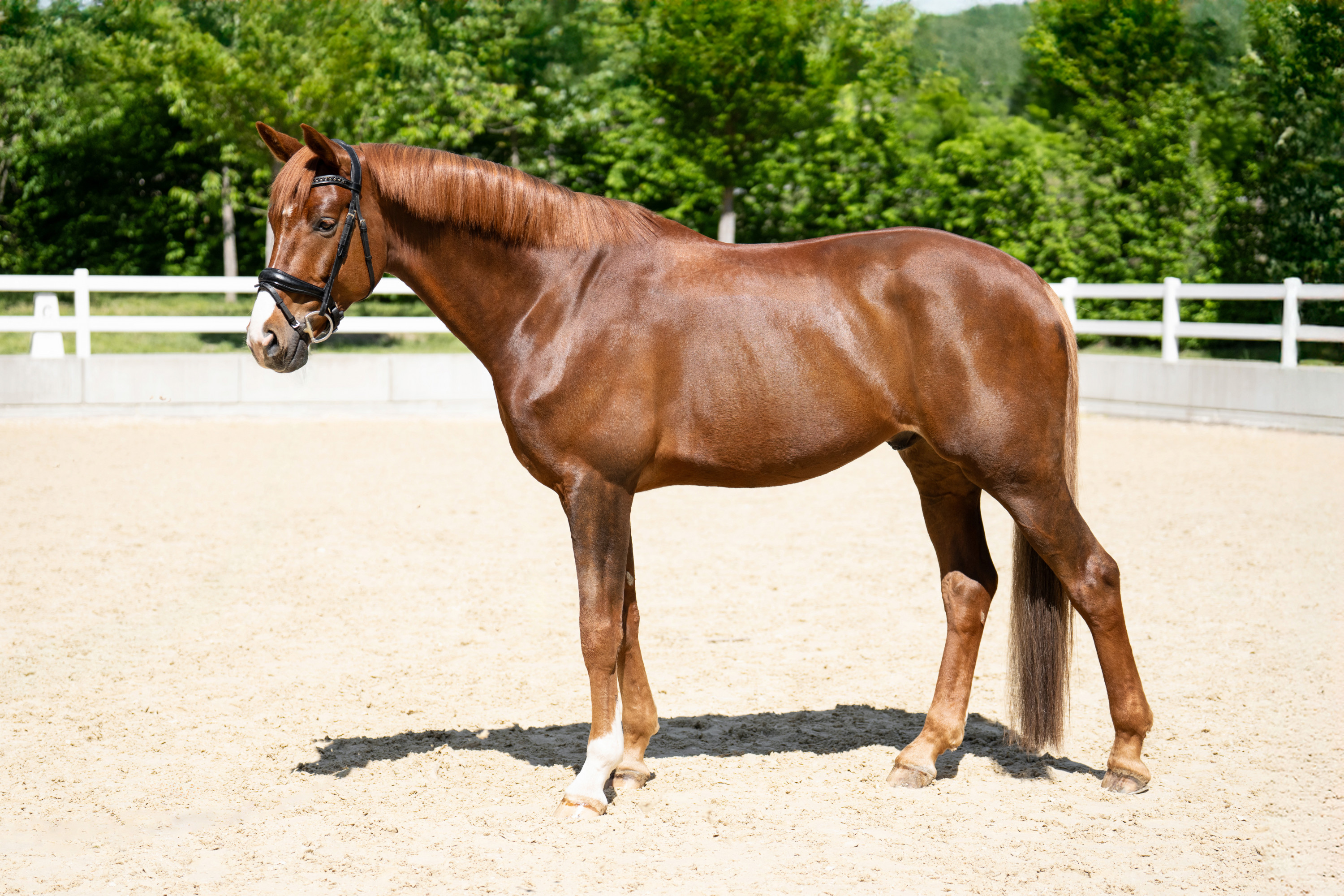"Sauvage kam als uneigerittener, vierjähriger Weidehengst zu uns. Glücklicher Weise hat Springbank auch hier sein wunderbar klares und ehrliches Wesen vererbt. Es gelang uns ihn kürzester Zeit, ihn einzureiten - trotz Baulärm, Wind und fliegenden Fahnen. Er ist unerschrocken und hat drei tolle Grundgangarten."