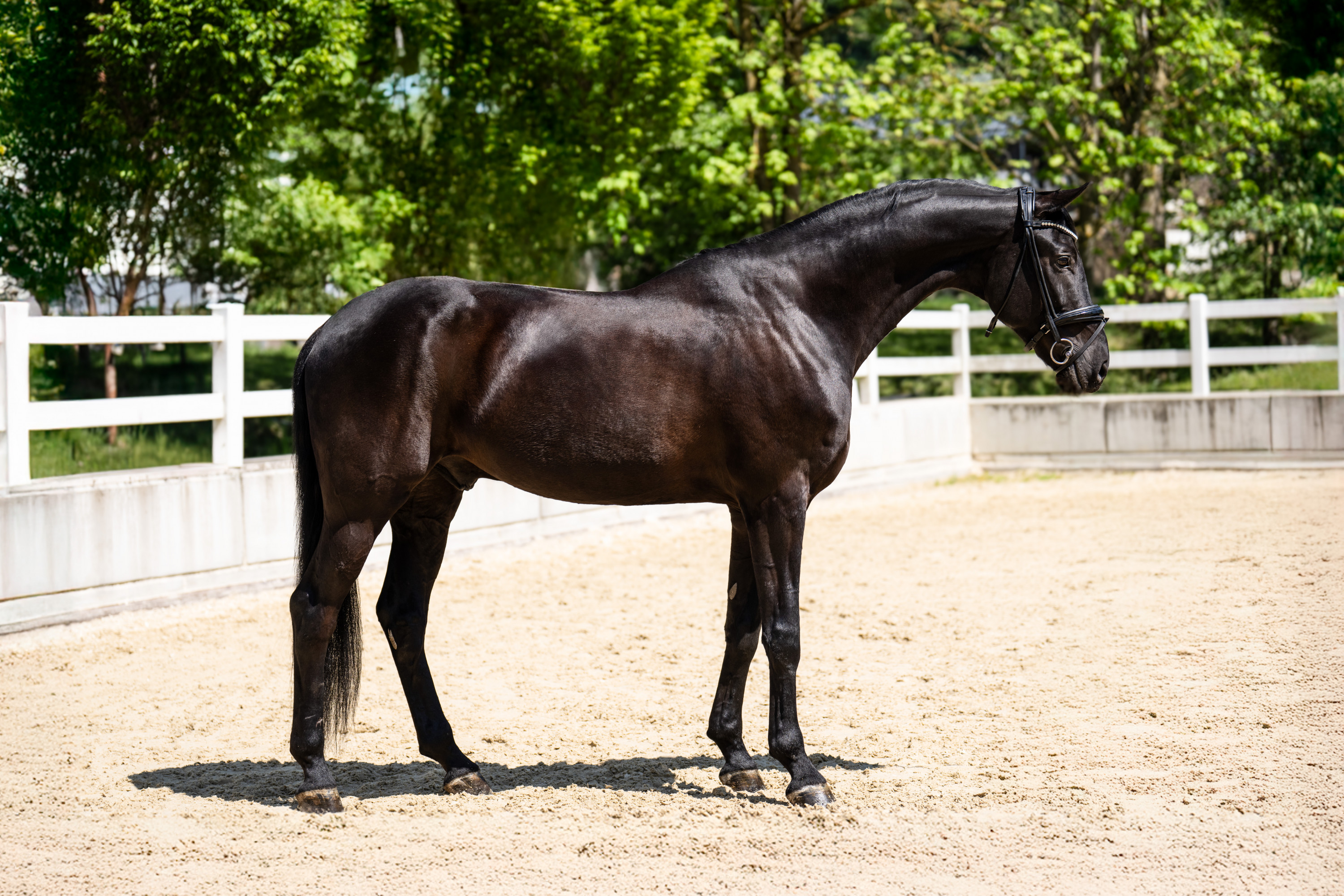 Son Coeur entdeckte ich dreijährig auf der Oldenburger Sattelkörung 2022. Der lackschwarze Secret-Sohn ist unheimlich großlinig und modern aufgemacht und holte sich den Titel des Reservesiegers der Oldenburger Sattelkörung 2022. Seine Veranlagungsprüfung im April 2022 beendete er mit einer Endnote von 8,54. Besonders sein Schritt und Galopp wurden sehr gut bewertet. Auch seinen 50-Tage-Test beendet Son Coeur 2022 erfolgreich mit guten und sehr guten Noten in Rittigkeit, Schritt und Galopp.