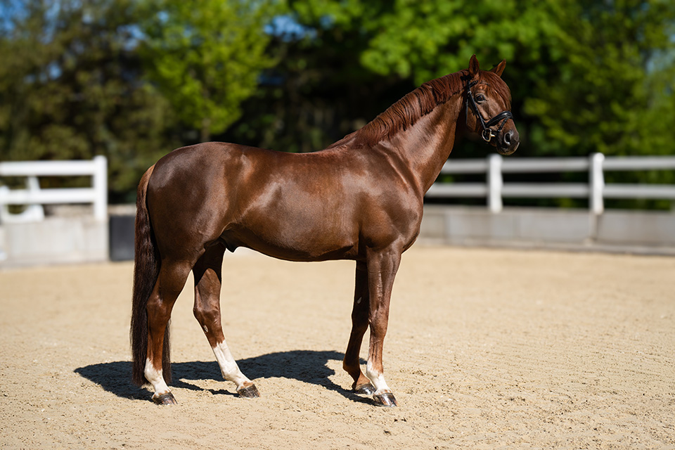 Dieser junge Hengst besticht bereits jetzt durch Eleganz, Intelligenz und eine außergewöhnlich reelle Grundausbildung. Sein klar auf Grand Prix ausgerichtetes Pedigree, sein Bewegungsablauf und seine Rittigkeit lassen keine Wünsche offen – ein Sportpferd mit Perspektive.